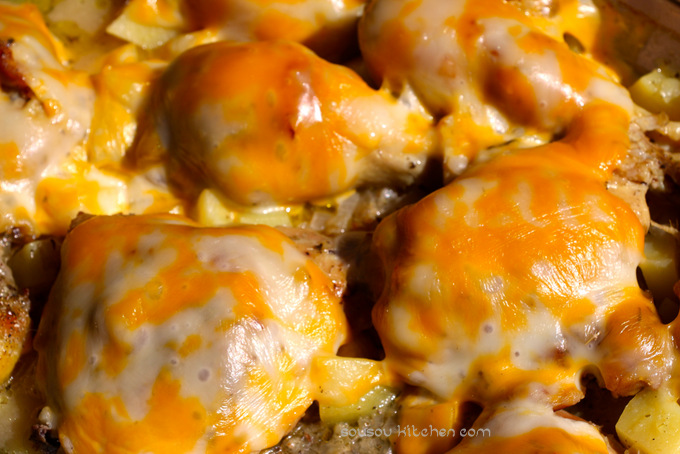 Gratin poulet, fromage et pommes de terre